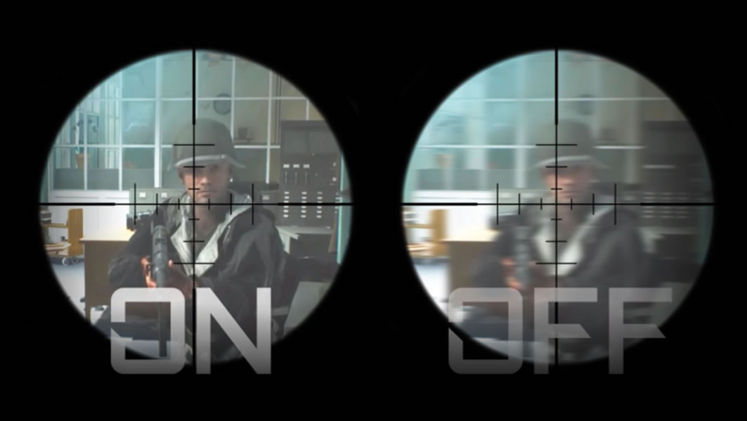 「ブラックイコライザー 2.0」は、画面を1296分割して暗部を明るくしてくれる機能。暗闇に隠れた敵を見つけ出すのに役立つ。いっぽうの「エイムスタビライザー」は、フレームの間に黒を挿入することで、映像の残像感を軽減する機能。高速に動いてもクリアな視界を確保できる