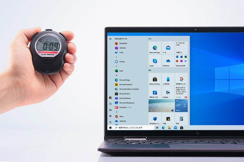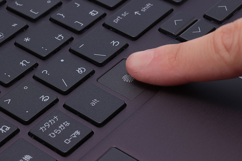 「Windows Hello」による指紋認証に対応、パスワードの入力は必要ない。指紋リーダーも一目でわかるので、ログインに迷うことはないだろう。OSへのサインインがスピーディーかつ安全に行える。顔認証とは異なり、マスクを付けた状態でも利用できるのでこのご時世には重宝するだろう。前述のとおり、立ち上がり時間が早いため、指紋認証と合わせてすぐに作業が始められる