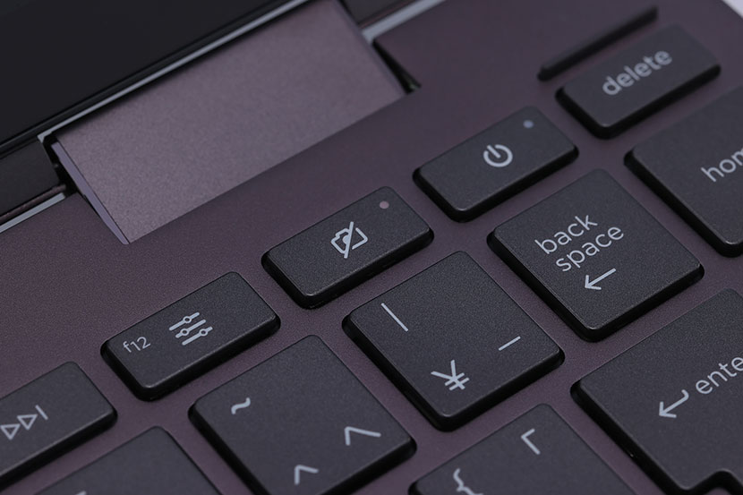 キーボードには、JIS配列84キーのアイソレーションキーボードを採用。コンパクトなボディながら、キーピッチは約19mmのフルサイズを確保しており、ゆったりと両手を置いて気持ちよくタイピングできた。しっかりとしたクリック感もあり、使いやすいキーボードという印象だ