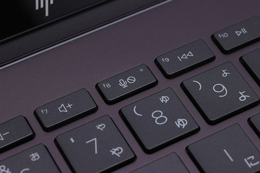 Webカメラをオフにする物理シャッターに加え、ワンタッチでマイクをミュートにできる「マイクミュート」キーを装備。自宅でWeb会議に参加している際に、電話がかかってきたり、インターホンが鳴ったりしてもすぐにマイクをミュートにできる