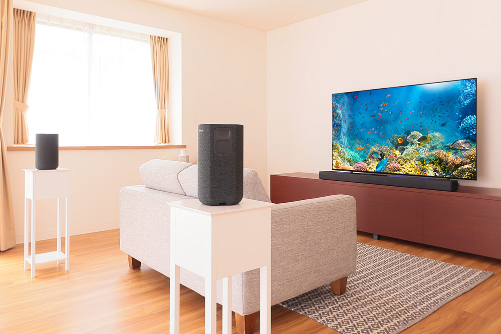 ソニー独自の「360 Spatial Sound Mapping」対応モデルが拡充 人気のサウンドバー「HT-A7000」との組み合わせで別次元のサラウンド感! バッテリー内蔵&ワイヤレスで設置の自由度を高めたリアスピーカーSA-RS5デビュー!