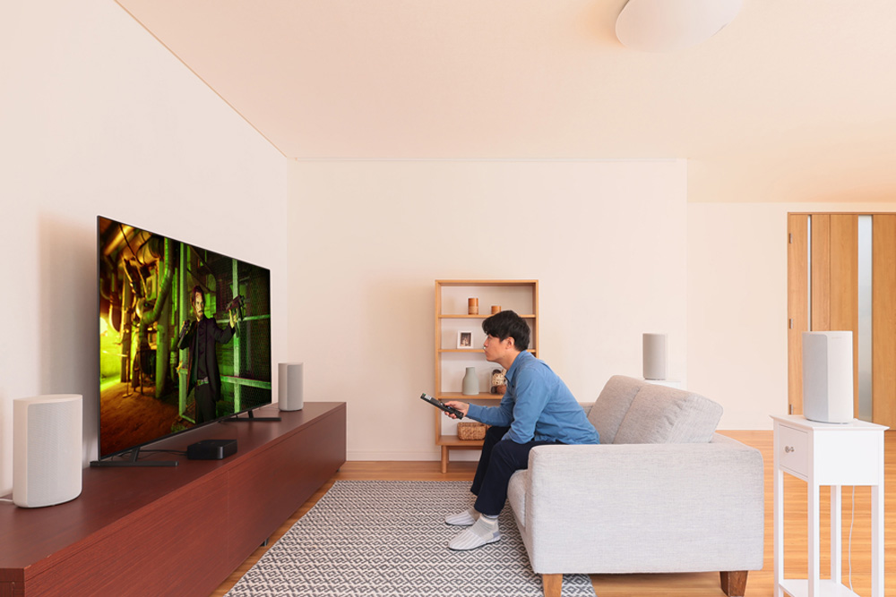 ソニーのフラッグシップサウンドバー「HT-A7000」は、別売りのワイヤレスリアスピーカー「SA-RS5」と組み合わせることで、「360 Spatial Sound Mapping」を楽しめるように進化。テレビ前に設置したサウンドバーとリアスピーカーの組み合わせによって、本格的な立体音響空間を作り出してくれる