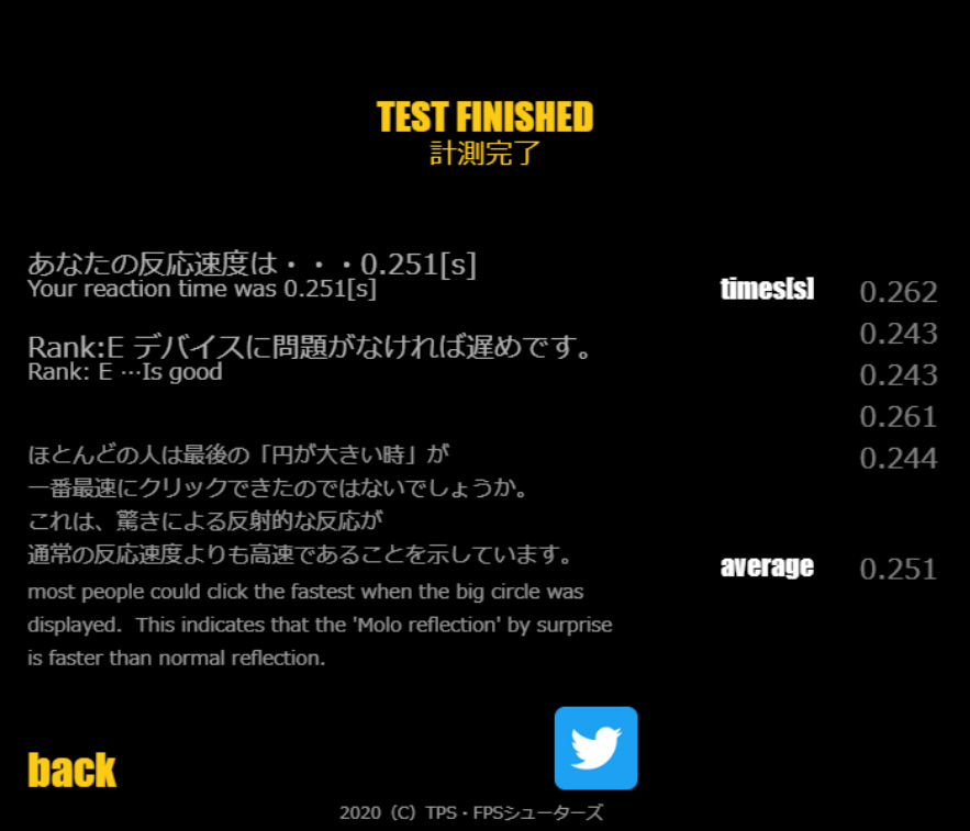 リフレッシュレートの違いで実際にどれだけ反応速度は変わるのか、反応速度測定サイト「反射神経テスト」でもチェックしてみた。その結果、5回の平均速度が60Hz駆動では0.353秒、165Hz駆動では0.251秒となった。アクションやシューティングといったコンマ1秒を争うゲームで確実な効果が期待できる