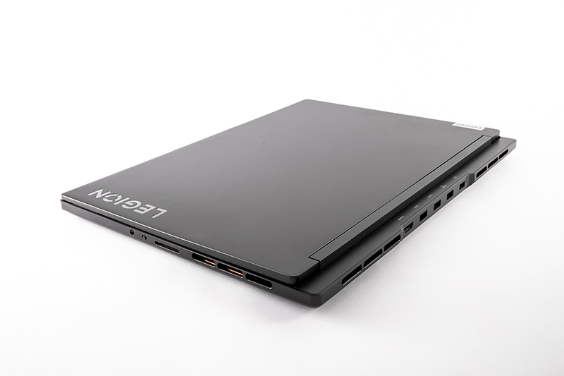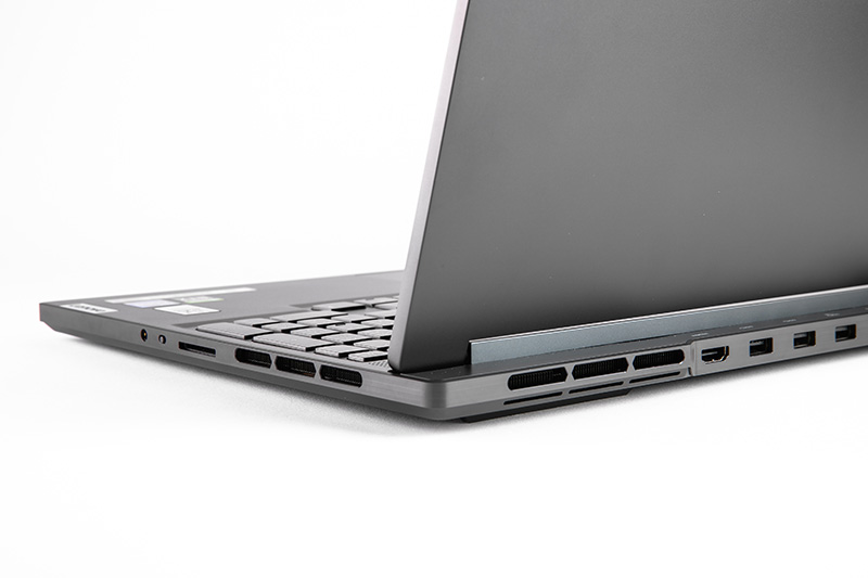また、ボディの構造にも注目したい。「Legion Slim 770i」はヒンジの後ろにボディ側がせり出した構造を採用している(下写真)。この構造は内部のスペースを広く確保するのに役立っており、従来モデルよりも29%大型の冷却システムを搭載し、冷却ファンの羽根の枚数は31%も増えているという。その結果、高い冷却性能を持ち、ハイスペックながら厚さ16.9〜21mmの薄型ボディを実現しているというわけだ。