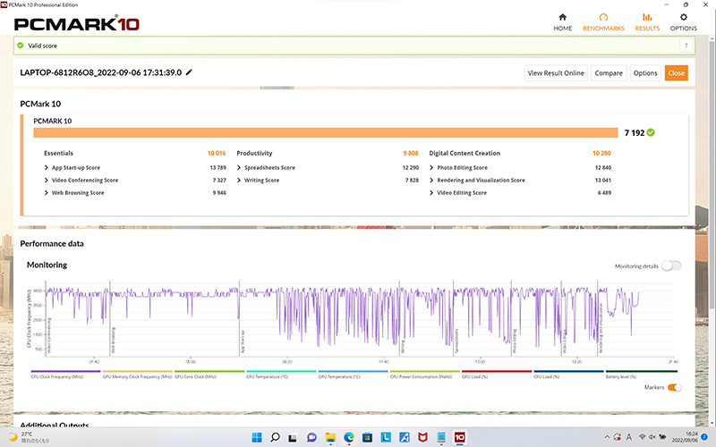 クリエイティブ作業での実力はどうか。Adobeの動画編集ソフト「Premiere Pro」(別売)を使って、スマートフォンで撮影したH.264/mp4のフルHD動画(約1分、約88MB)をエンコードしてみた。CPUパワーのみでは約18秒かかったが、GPU支援を有効にしたところ、約5秒にまで時間が短縮。「GeForce RTX 3060 Laptop GPU」の処理能力の高さを実感できた。