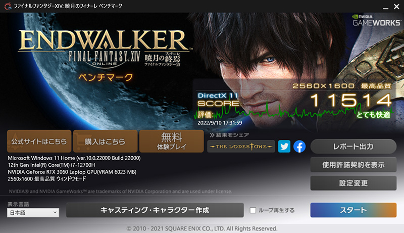 ここからは「Legion Slim 770i」のパフォーマンスを検証していこう。最新のPCゲームを高解像度で快適にプレイするには、すぐれたグラフィック性能はもちろん、高速な処理を行うのに十分な性能を持ったCPUと大容量のメモリー、さらにゲームのファイルを高速に読み出すストレージが不可欠だ。その点、「Legion Slim 770i」はCPUに14コア/20スレッドの「第12世代インテル® Core™ i7-12700H プロセッサー」を、GPU(グラフィックチップ)にNVIDIAの「GeForce RTX 3060 Laptop GPU」を、メモリーに高速なDDR5-4800の16GBメモリーを搭載。さらに、ストレージには、高速&大容量のNVMe接続の1TB SSDを搭載しており、高いパフォーマンスが期待できる。