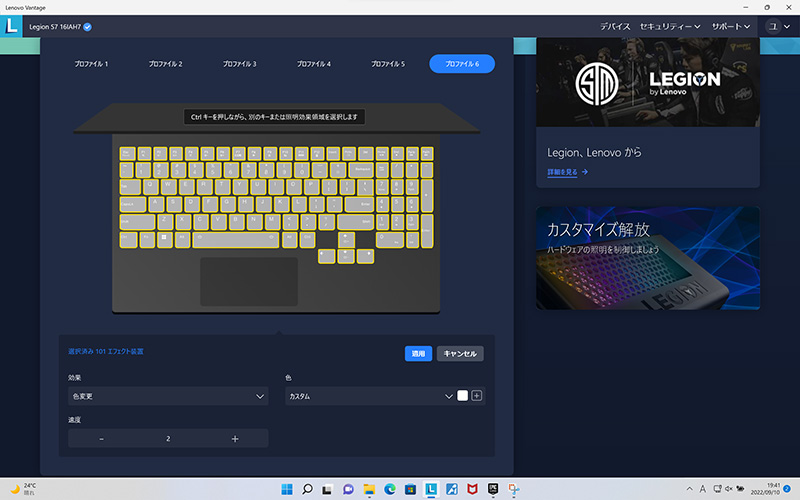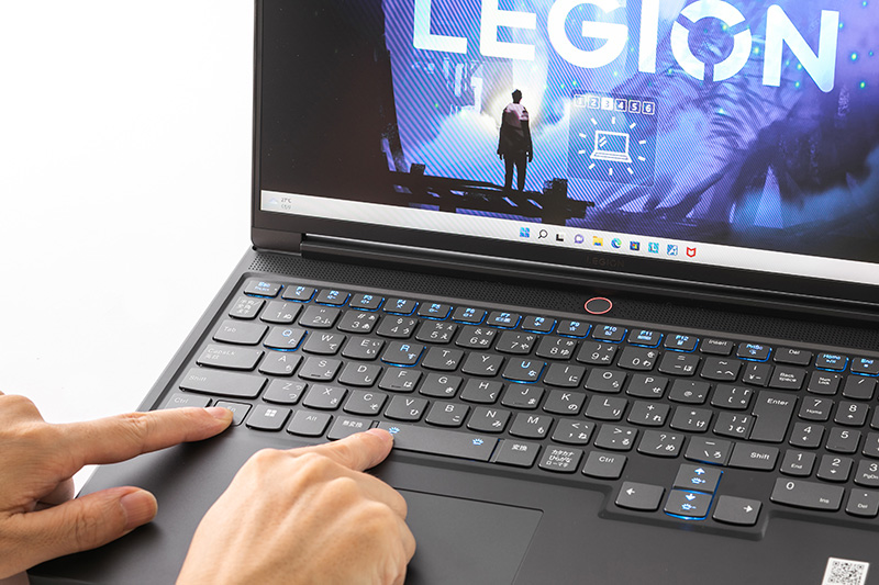 最後に、「Legion Slim 770i」の使い勝手をチェックしていこう。キーボードは、ゲーミングノートPCらしくRGBバックライトを搭載。個々のキーが独立したアイソレーションタイプで、意図せず複数キーを同時押ししたように判断されることを防ぐ100%アンチゴースト機能にも対応しており、正確なキー入力ができる。