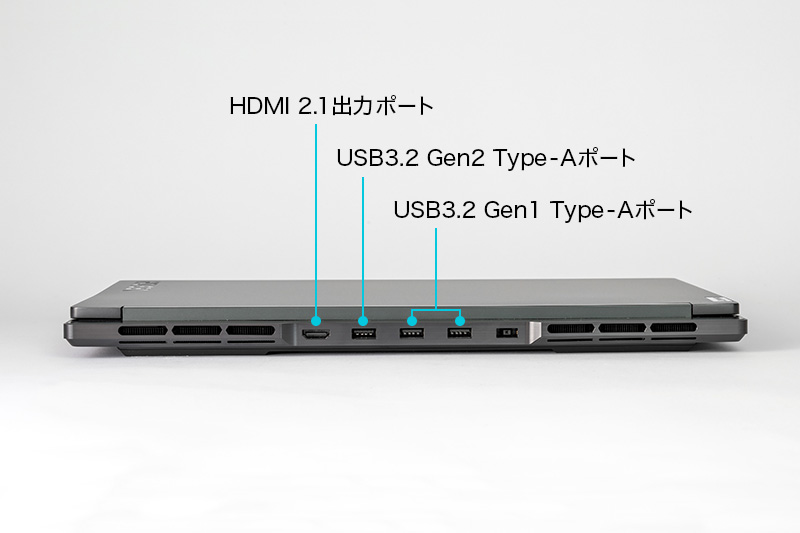 | 外部インターフェイス | HDMI 2.1出力ポート、USB3.2 Gen2 Type-Aポート、USB3.2 Gen1 Type-Aポート×2、Thunderbolt 4対応USB Type-Cポート、USB3.2 Gen2 Type-Cポート、マイク入力/ヘッドホン出力ポート、4-in-1メディアカードリーダー |