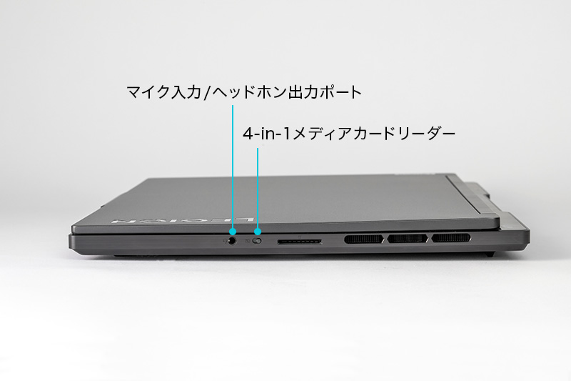 このほか、外部インターフェイスには4-in-1メディアカードリーダー(SD、SDHC、SDXC、MMC)を搭載。フルサイズのSDメモリーカードを直接接続できるので、カメラから撮影データを取り込むときにも便利だ。