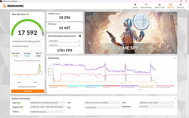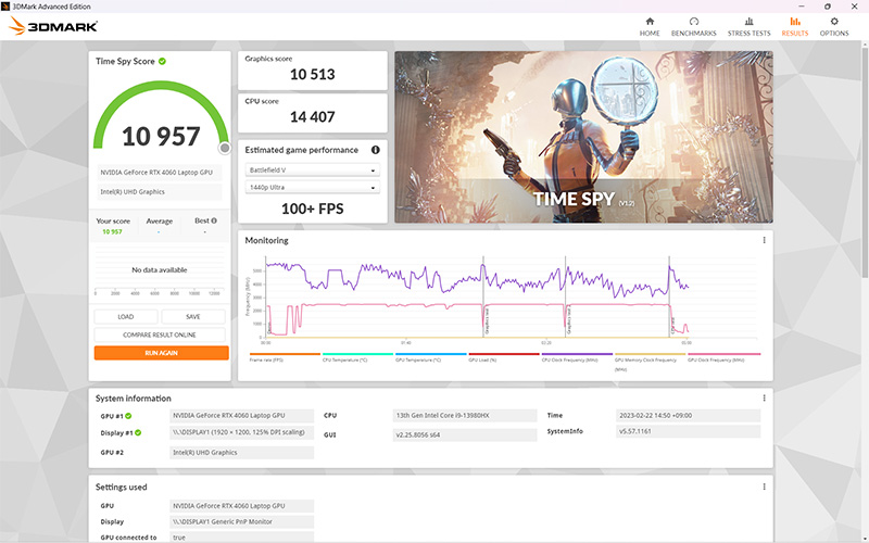 さらに、搭載するストレージは1TBのPCIe 4.0 x4接続SSDで、メモリーは32GBのDDR5-4800。全方位で隙のないハイスペックが追求されており、猛者揃いのゲーミングノートの中でも、そのスペックの高さは次元が違う。