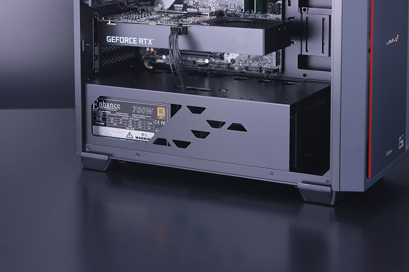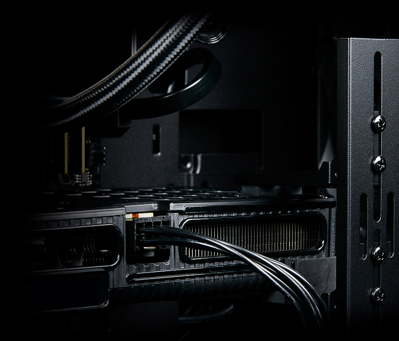 ミニタワー型ならではのコンパクトなサイズを維持しつつ、内部スペースを広く確保。最大5基の120mm冷却ファンや最大240mmの水冷ラジエーターを搭載できるうえ、エアフローを最適化するデュアルチャンバー構造を採用しており、ミドルタワー級のパーツを搭載できる高い冷却性能を備えている。レビュー機(「LEVEL-M7P5-R56X-RBX-K」)を用いた性能検証でも、搭載パーツが秘めるポテンシャルをしっかりと引き出しており、人気ゲームタイトルが予想以上の高フレームレートでプレイできた。