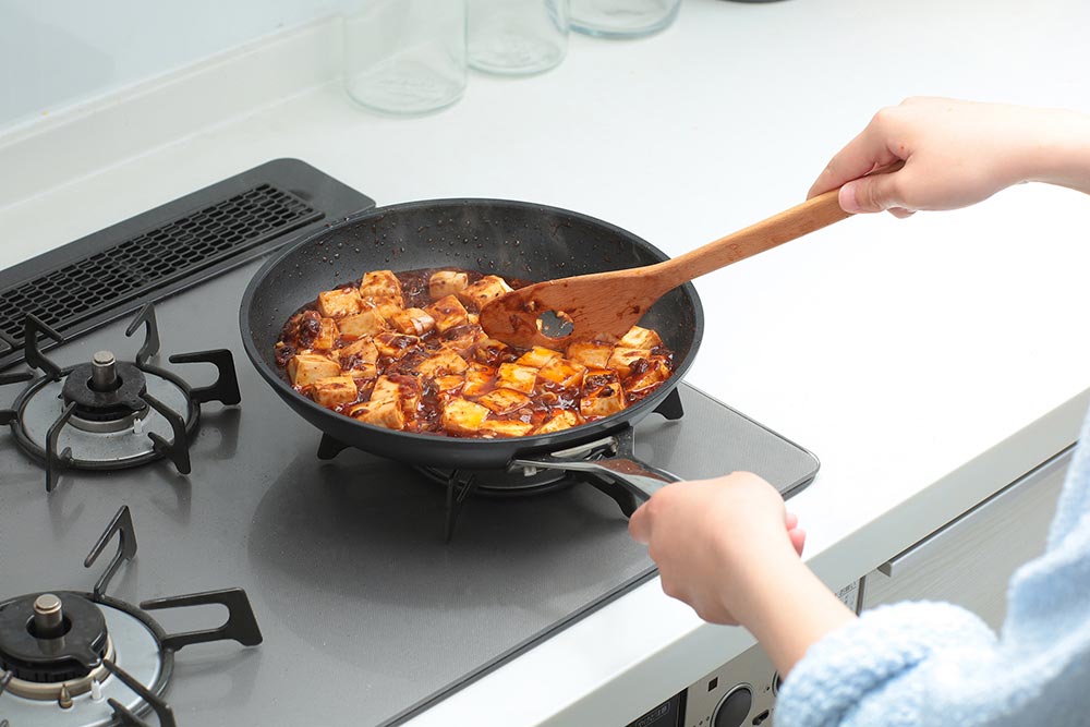 思わず手で触れてみたくなる、フロストガラス採用の美しいガラスドア。表面には細かなテクスチャーが施されており、指紋が付きにくく、汚れが付いてもサッと拭き取れる機能性もあわせ持つ。キッチン空間がより洗練された雰囲気になるのが印象的だ
