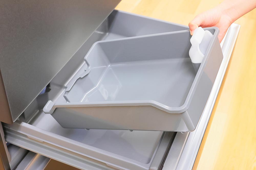 氷を貯める「ワイドアイストレイ」は簡単に取り外して水洗いでき、清潔に保てる。もちろん、「ワイドアイストレイ」を取り外して冷凍室の収納力を拡張することも可能だ。なお、製氷ユニット内の製氷皿も水洗いでき、常に清潔な氷を作れるのがうれしい