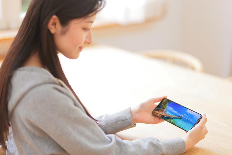 先にも解説したが、ディスプレイを90度に曲げたハンディカムスタイルでは、端末を縦に自然にしっかりと握れるので安定して撮影できる。チルトやパンと呼ばれる上下左右への撮り回しもスムーズに操作可能だ。特に、広角カメラには光学式手ぶれ補正機構(OIS)と水平ロック機能が内蔵されているので、滑らかな動画撮影を強力にサポートしてくれる。