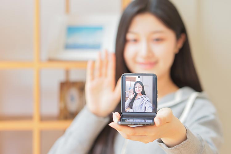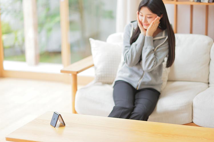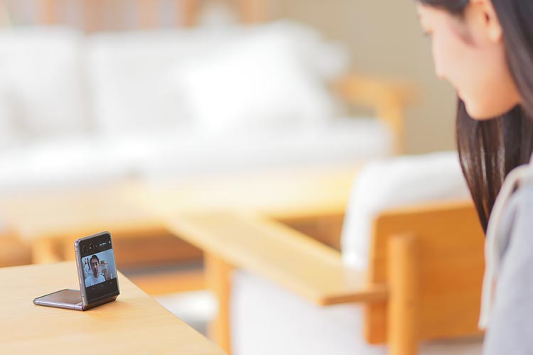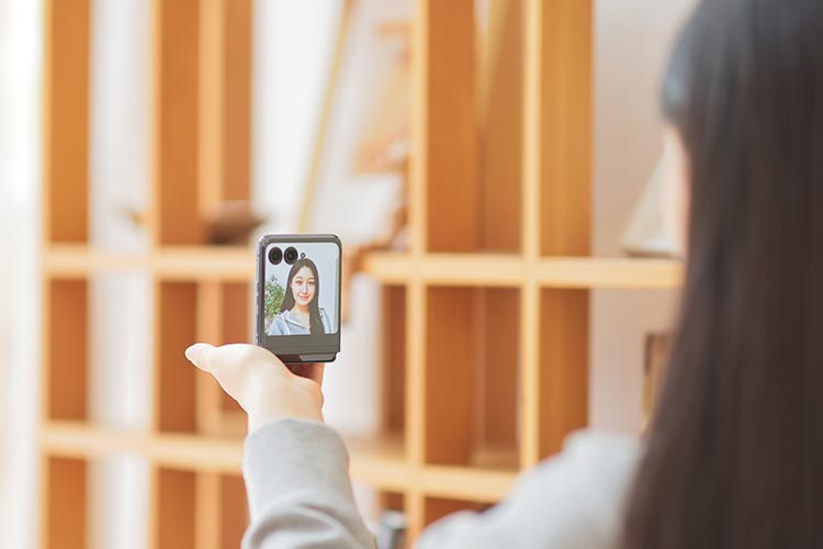 縦折りタイプの折りたたみスマートフォンで最大クラスの3.6インチアウトディスプレイと、6.9インチメインディスプレイを搭載した「motorola razr 40 ultra」ならではの活用方法が、卓上に設置して行うビデオ通話。アウトディスプレイに相手の姿を大きく映し出しつつ、高画質なアウトカメラで自分の姿を相手に届けられるのだ。
