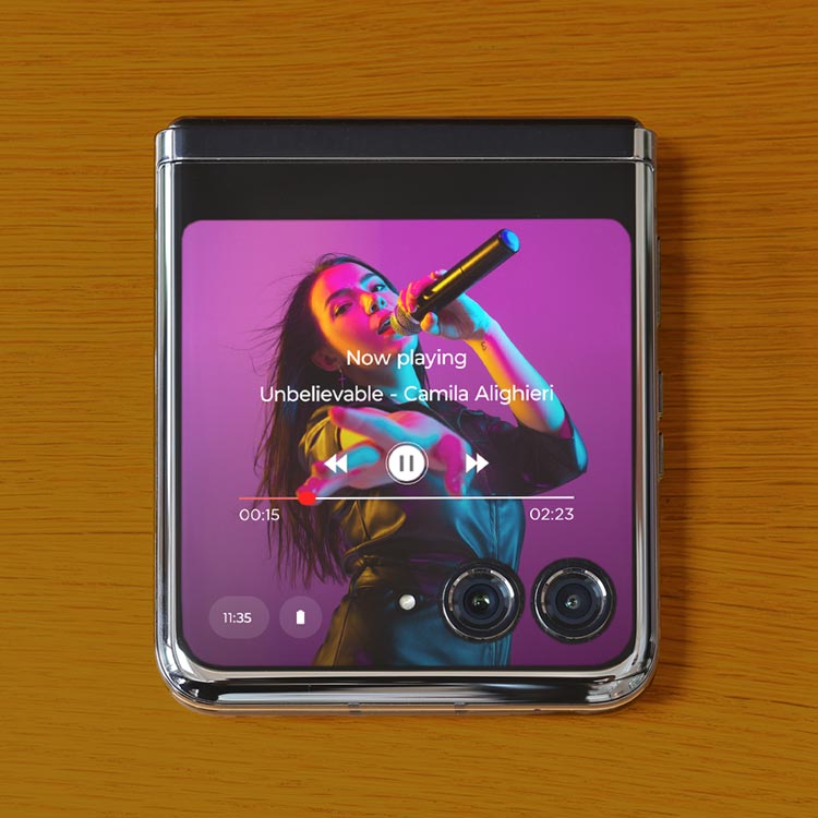 ディスプレイの折りたたみ機構により、さまざまな場所に安定して設置できるのも本機のアドバンテージ。モトローラは、一般的なスマートフォンとはひと味違う撮影スタイルを「motorola razr 40 ultra」で生み出したと言えよう。