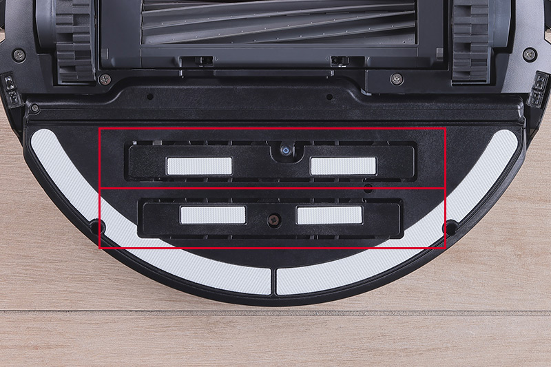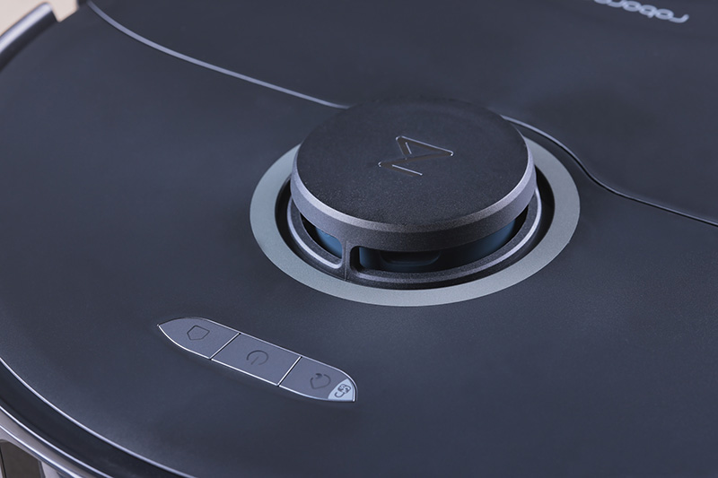 本体天面の突起部に搭載された高性能LDSレーザーセンサー。周囲の環境の測定にレーザーを使用するため、遮光カーテンを閉めた暗い部屋などでも正確なマッピングが行えるのがメリットだ。また、本体前面には「ストラクチャードライト&カメラ」と赤外線イメージングシステムを搭載し、履物やコードなど11種類の障害物を認識・回避する