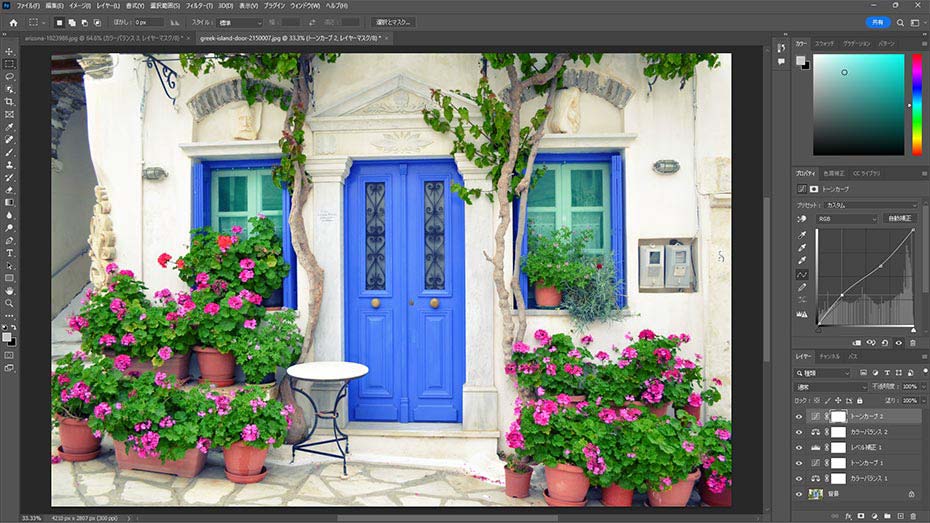 「Adobe Photoshop」(左画像)は1993年からWindows PCに対応。画像編集はもちろん、チラシやポスター、Webサイトのデザインなどで幅広く活用されている。当初、Windows PCに対応していなかった「Adobe Premiere」も、2003年にはWindows PC専用ソフト「Adobe Premiere Pro」(右画像)として生まれ変わった。映像補正やテロップ追加が行えるのはもちろん、豊富なエフェクトやトランジションが用意され、プロクオリティの動画制作が可能だ