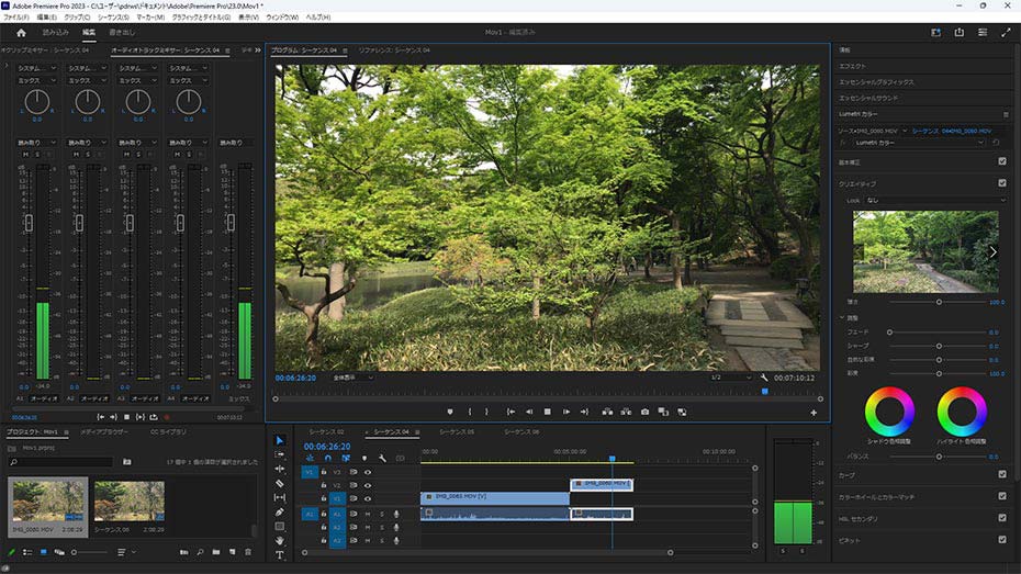「Adobe Photoshop」(上画像)は1993年からWindows PCに対応。画像編集はもちろん、チラシやポスター、Webサイトのデザインなどで幅広く活用されている。当初、Windows PCに対応していなかった「Adobe Premiere」も、2003年にはWindows PC専用ソフト「Adobe Premiere Pro」(下画像)として生まれ変わった。映像補正やテロップ追加が行えるのはもちろん、豊富なエフェクトやトランジションが用意され、プロクオリティの動画制作が可能だ