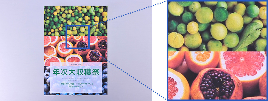 実際にA3/A3ノビの印刷を行ってみたが、図面は大きくて見やすく、ポスターには迫力がある。A3/A3ノビプリントの魅力を改めて実感した。気になる印刷品質も申し分なく、文字や線はシャープで鮮明。写真やイラストは、繊細なグラデーションもトーンジャンプすることなく、美しく仕上がった。印刷速度の速さも含めて、印刷品質はまさに「ビジネスクオリティ」だ。