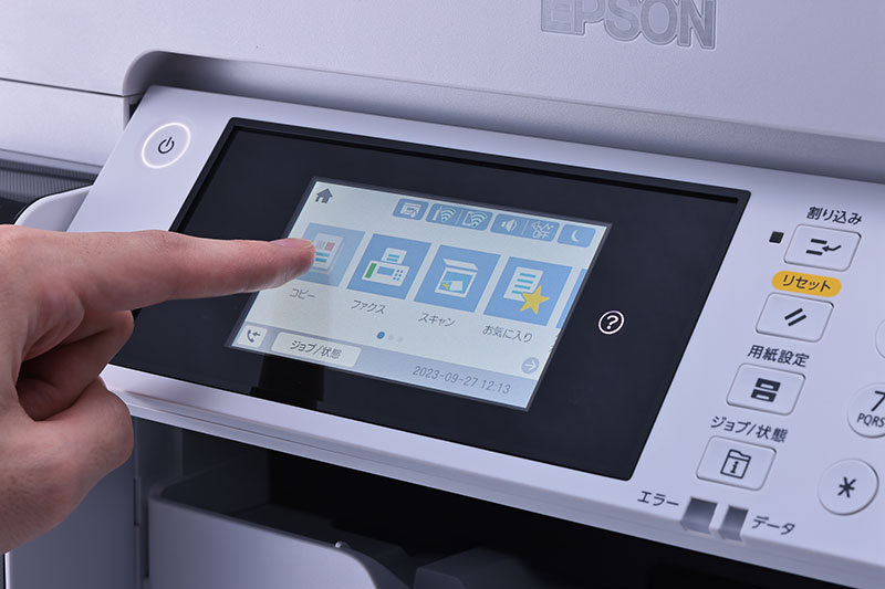 印刷コスト、印刷速度、そして、印刷品質も申し分のない「PX-M6712FT」だが、使い勝手にもとことんこだわっている。一般的なレーザープリンターに比べて格段にボディがコンパクトで、オフィスのちょっとした空きスペースにすっきりと設置できたほか、本体前面に装備された、チルト式の4.3型光学式タッチパネルの操作性も高かった。タッチパネルを見やすい角度に調節して、スイスイと直感的に操作できるので、ビジネスの貴重な時間をむだにする心配はない。