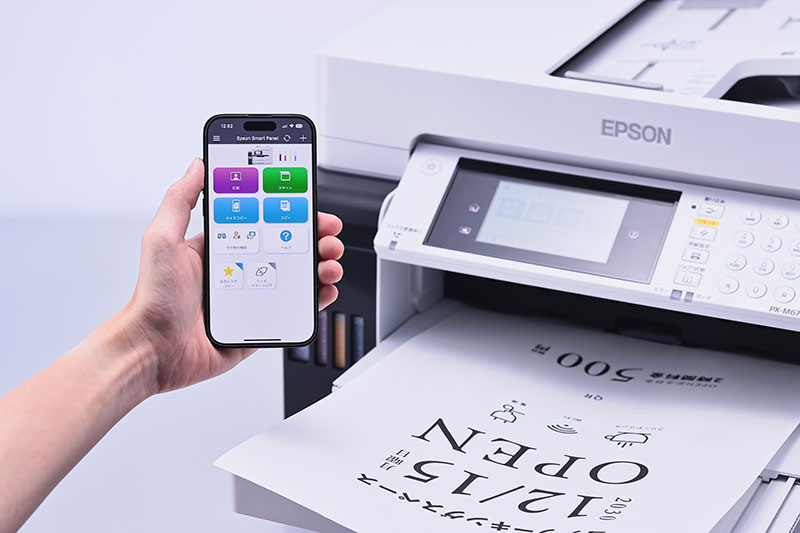 ほかにも、最大550枚の用紙をセットできる大容量給紙トレイや、印刷時のみ排紙トレイが出てくる自動排紙トレイ、印刷コストを低減できる自動両面印刷への対応、スマートフォン用アプリ「Epson Smart Panel」を用いた軽快なワイヤレス印刷など、細かな部分まで抜かりなく作り込まれている。ビジネスプリンターの使い勝手はドキュメント業務の、ひいては、ビジネスそのものの成果にも直結する重要な要素だが、「PX-M6712FT」には死角がほとんどなく、さまざまなシーンでストレスなく使用できた。
