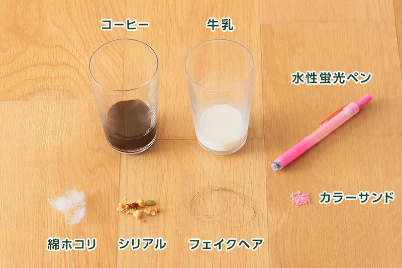 検証方法は、フロアの8か所に、綿ホコリやシリアル、フェイクヘア、カラーサンド、コーヒー、牛乳、水性蛍光ペンなどの疑似汚れを付け、その汚れがしっかりと取り除かれるかをチェックするというもの。なお、「スマートスクラブ」はオンに設定した。