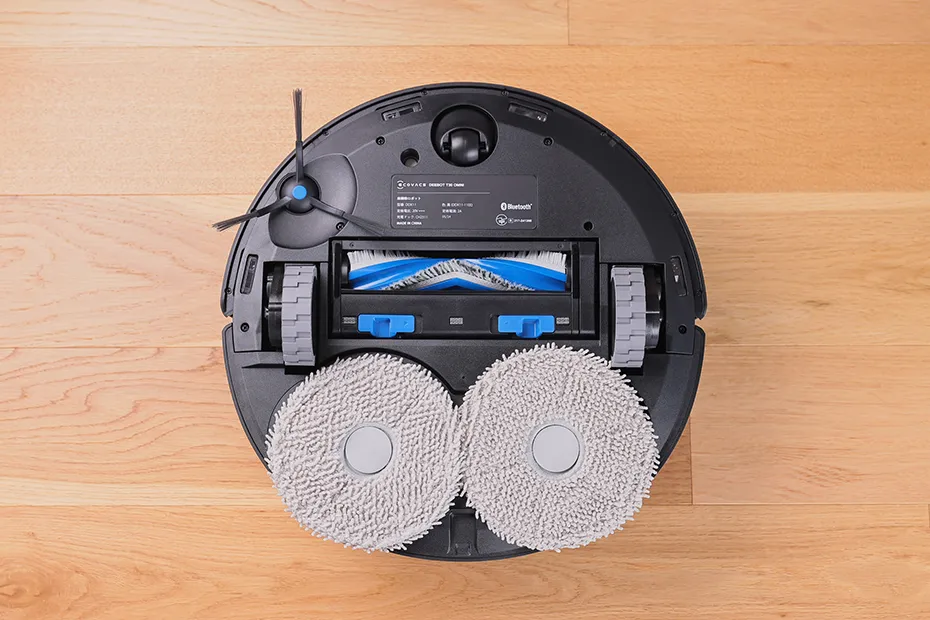 また、感心したのが水拭き掃除についてだ。連続可変モップエクステンダーによって、本体右側面からモップがせり出し、部屋の隅や家具の脚回りまできっちりと水拭きする「TruEdge」技術を新搭載。丸型のロボット掃除機はどうしても部屋の隅や家具の足回りの掃除が苦手だが、なるほど、「モップをせり出させる」という手があったか。確かに、家具のキワまできっちりとモップを届け、隅々まで拭き掃除してくれた。