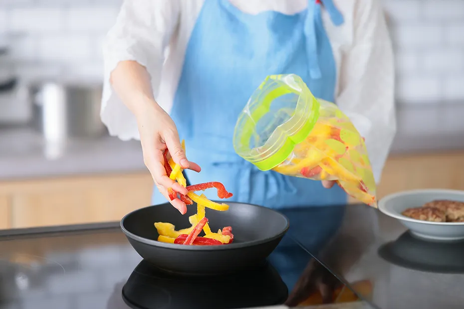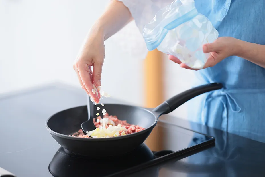 「まとめ買いした野菜や、使い切れずに残った野菜、市販のカットされた野菜などを生のまま『切れちゃう瞬冷凍A.I.』で冷凍保存しておくのも便利ですよ。冷凍前の下ゆでがいらず、凍ったまま必要な分だけパラパラとほぐせるので、そのまま調理に使えるんです」