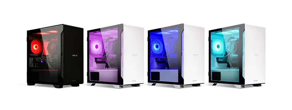まずは、「LEVELθ」の特徴である、スタイリッシュなケースからチェックしていこう。「ホワイト」と「ブラック」のカラーバリエーションが用意された容量約40Lのミニタワーケースは、内部のパーツ類が透けて見える強化ガラスのサイドパネルを採用。ケース内部では、モデルによって発光色が異なるLEDイルミネーションが輝き、ゲームプレイへのモチベーションを否応なく高めてくれる。