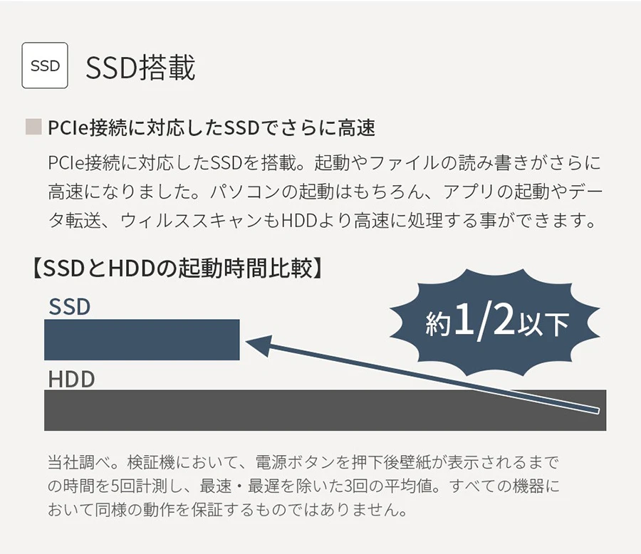 パフォーマンス高速SSD&高性能CPUで、