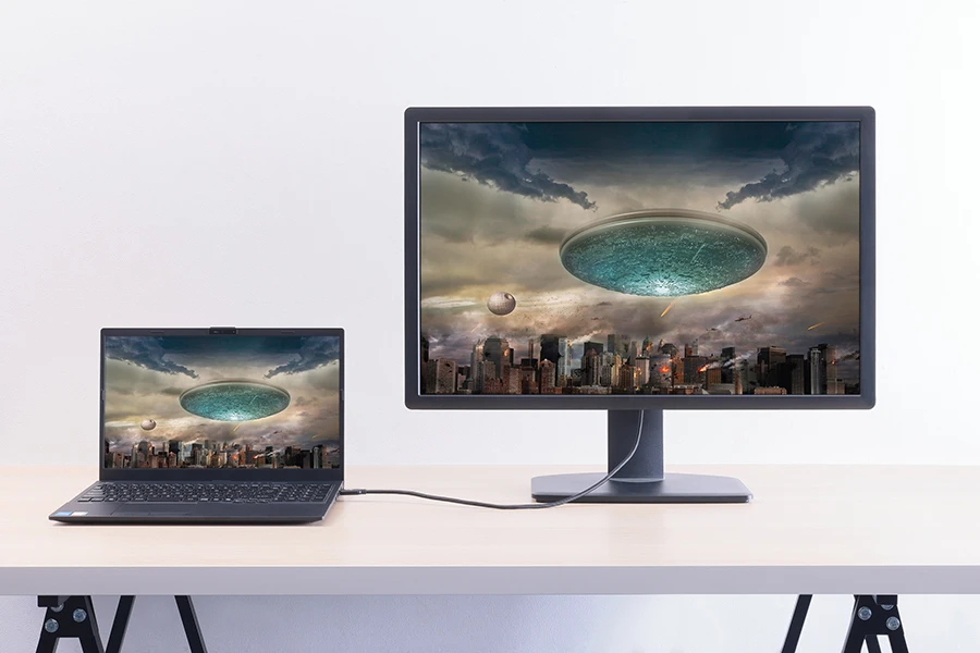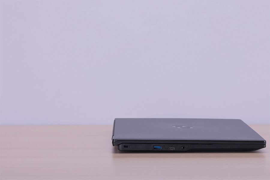 左側面には、USB 3.2 Gen1 Type-Aポート、USB 3.2 Gen1 Type-Cポート、マイク入力/ヘッドホン出力ポートを装備。右側面には、USB 3.2 Gen1 Type-Aポート、HDMI出力ポート(4K映像出力対応)、USB 3.2 Gen2 Type-Cポート(給電/映像出力対応)、有線LANポートを装備する