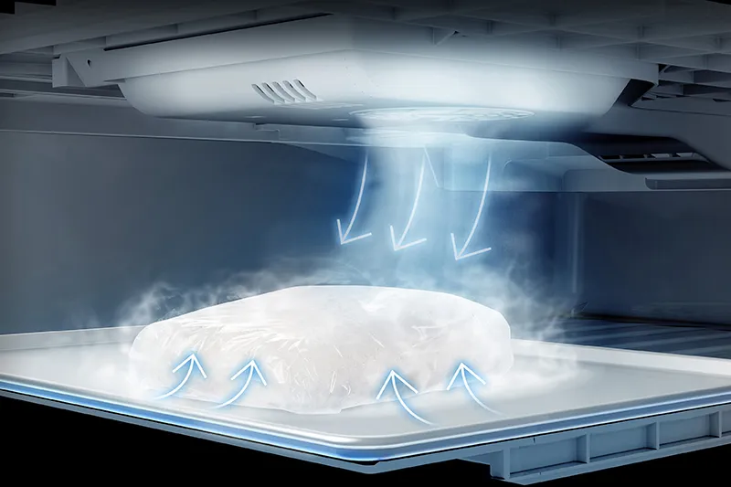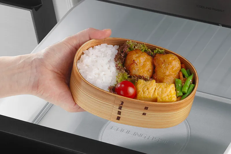 「上段ケースカバー」で温度変化を抑えて食品のおいしさをキープする「霜つき抑制冷凍」や、大風量の冷気で急凍しておいしく保存する「熱いまま急速冷凍」、急速冷却でお弁当のあら熱取りなどの時間を短縮する「あら熱取り急速冷却」、約-3度の微凍結でそのまま食品が切れるから調理がラクになる「サクッと切れる微凍結」など、こだわりの冷凍・冷却機能を搭載。食品をおいしく保存して、調理の時短も行えるため、家族みんなの笑顔が増えそうだ