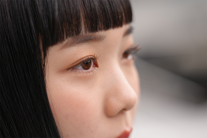 「FE 50-150mm F2 GM」の望遠端150mmで、最短撮影距離まで近づき、モデルを撮影してみた。モデルの凛とした表情を目元だけで表現できた。この程度まで寄れれば、ピアスや指先のリング、ネックレスなど、身につけているアクセサリー類でも、イメージどおりに近づいて大きく切り取ることができ、さまざまな画作りに対応できる。150mmだと被写体がデフォルメされず、正確なフォルムでとらえられるのも魅力だ。