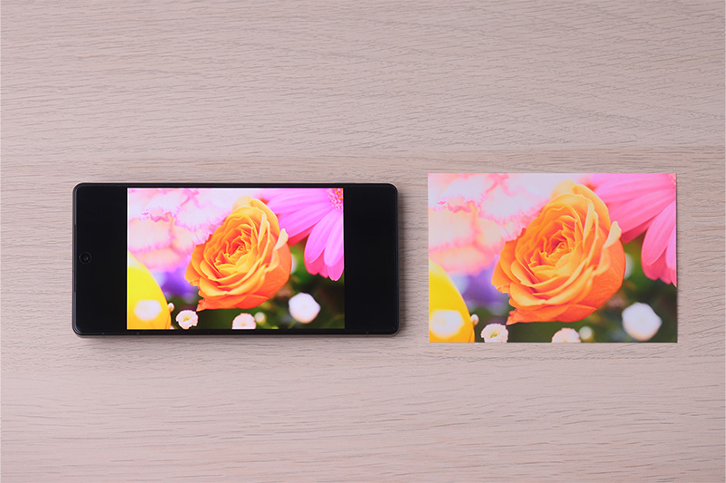 スマートフォンのカメラで撮影した写真を印刷してみたところ、画面で見たままの明るく鮮やかな写真印刷が行えた。スマートフォンの画面は高輝度なため、プリントした写真は暗い印象になりがちだが、本機の印刷はスマートフォンの画面で見たときの印象と変わらない。このスマートフォン経由での明るく鮮やかな写真印刷も「PIXUS TS5530」のアップデートポイントのひとつだ。