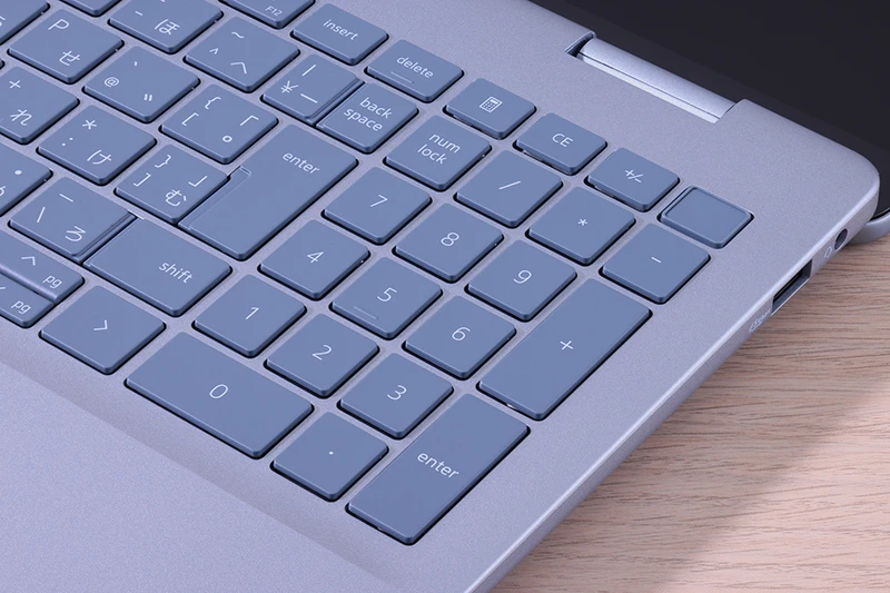キーボードについても、16型ならではのゆとりが魅力。キーピッチ約18.7mmのフルサイズキーボードを採用しているうえ、数値入力に便利なテンキーが付属しており、素早く正確にタイピングしやすい。そのほかバックライトも搭載しており、夜間のリビングルームなど、暗い環境で作業しやすいこともポイントだ。