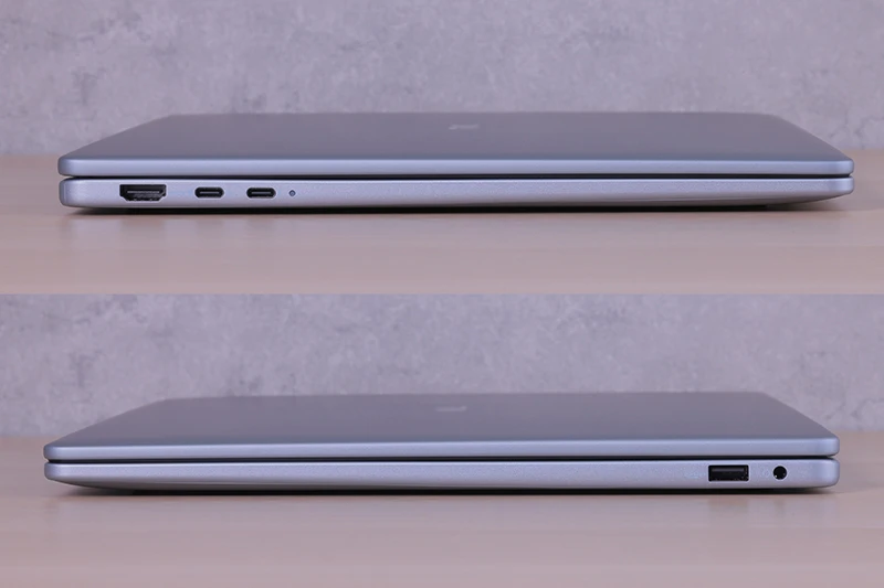 本体左側面には、HDMI出力ポート、USB 3.2 Gen 2 Type-Cポート(映像出力/給電対応)、Thunderbolt 4ポート(映像出力/給電対応)を装備。右側面には、USB 3.2 Gen 1 Type-Aポート、ユニバーサルオーディオジャックを装備する