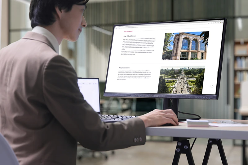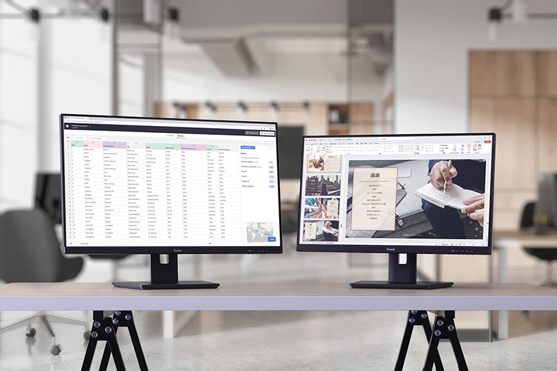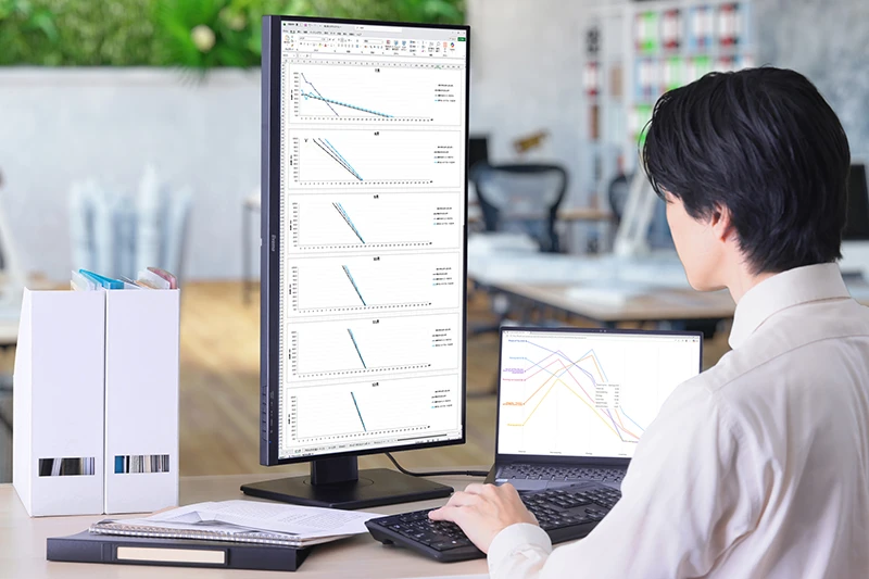 また、画面を自由自在に調節できる多機能スタンドにより、最適な姿勢やスタイルで作業できる点も大きな魅力。さらに、ナローベゼルとフラットデザインの掛け合わせが画面への集中を促してくれるし、表示がブレにくい100Hzのリフレッシュレートが作業の質まで高めてくれる。接続性と快適性の両面から業務効率を高めたいなら、「ProLite」シリーズを選んで損はない。