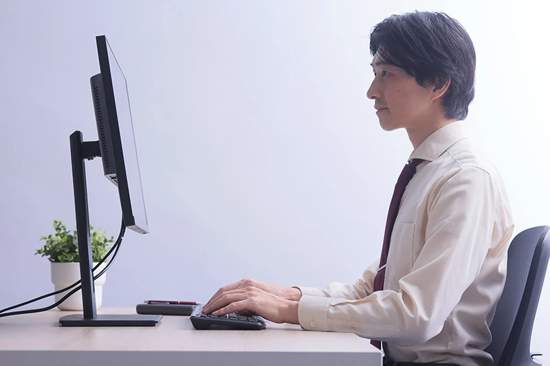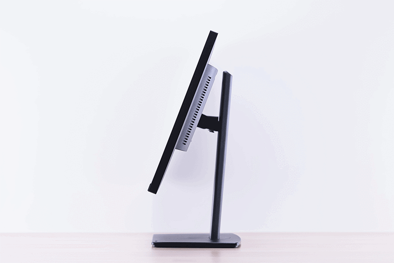 案外見落とされがちだが、ディスプレイを支えるスタンドの可動範囲は製品によって大きく異なり、わずかなチルトにしか対応していないものもある。当然ながら、ユーザーの体格は人それぞれ異なるし、デスクやイスの高さや形状もさまざま。スタンドの可動範囲が限られたディスプレイでは適切な姿勢で作業しにくくなるので、疲労やストレスによって生産性が低下したり、ひどい肩こりや腰痛などのトラブルに発展したりする場合もある。