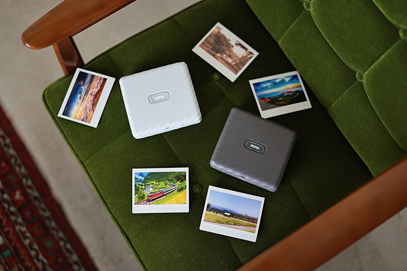 1:1の画角で、構図にこだわったプリントが楽しめる「instax SQUARE Link™」。カラーバリエーションには、さわやかな「アッシュホワイト」とシックな「ミッドナイトグリーン」の2色が用意されている