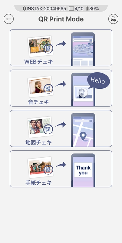 専用アプリ「instax Link WIDE™」には、写真の楽しみ方をさらに広げる機能も用意されている。なかでも便利に感じたのが、WebサイトのURLや音声メッセージ、位置情報などをQRコードとして追加できる「QR Print Mode」。実際に試してみると、写真にストーリー性を持たせたり、思い出の情報をそのまま残せたりと、チェキプリント™の活用幅が大きく広がった。