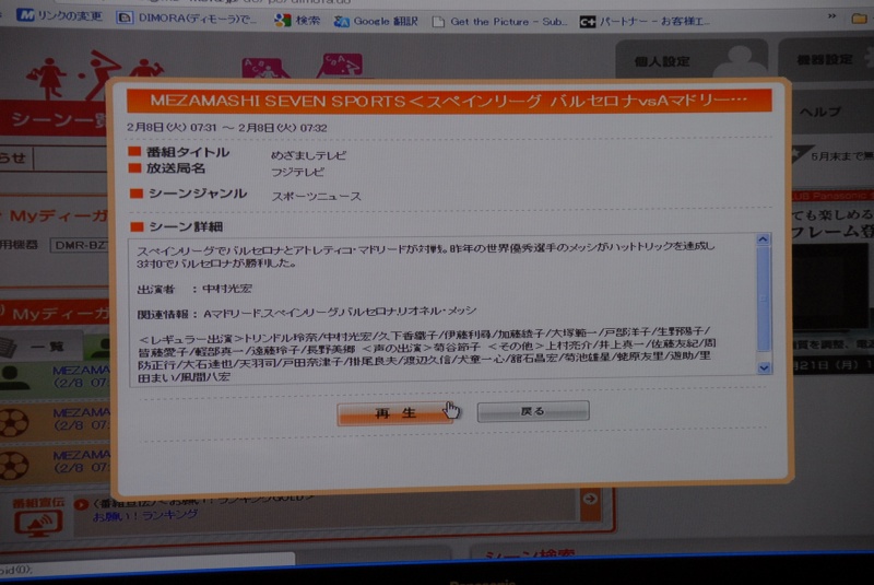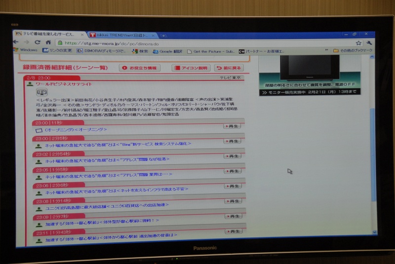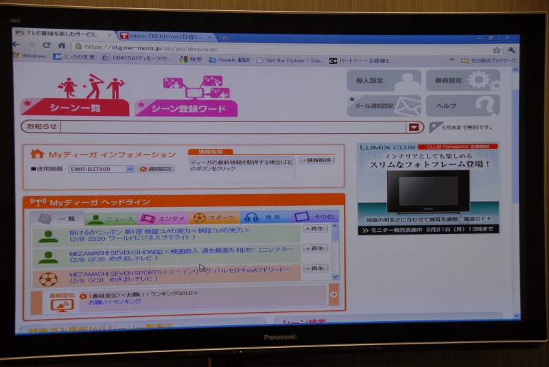 言葉で書くと難しそうに思えるが、DIGAで録った過去の番組のハイライトシーンや見どころを検索できるサービスである。例えばニュース番組なら、Webブラウザーにニュースのヘッドラインが表示され、見たいニュースを選ぶと、ネット経由の操作でそのシーンがDIGAで自動再生される仕組みだ。