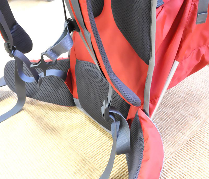 海外のメーカーからいくつか類似商品が発売されてはいるが、さすがここは日本のメーカーだけに、日本人体型に合ったサイズや軽さはもちろんのこと、幼児の安全性と快適性を考慮した6点固定式安全パッドや、赤ちゃんのよだれがつく部分を洗濯可能なフリース素材にするなど、きめ細かい配慮がなされている。また26Lというデイバッグ並みの容量もあるので、これ一台で親も十分な荷物を持てるといった具合だ。およそ生後9カ月から3歳までの子どもを背負うことができ、長く使用できるのも利点だ。
