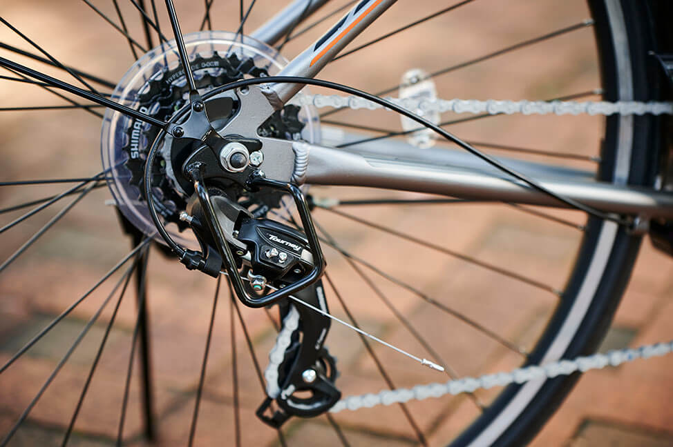 そして街乗り機能は、駐輪しやすい片足型スタンドや、フレームに直(じか)付けされたリング錠。ぬれた路面でも服を汚さない泥よけ、ズボンの裾を油汚れから守るチェーンケース、さらにLED型サイクルライトなどを装備して、クロスバイクなどにありがちな普段使いでのストレスは何ひとつないでしょう。