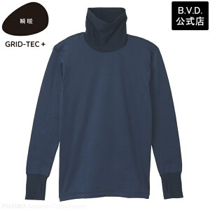 BVD 瞬暖GRID-TEC+ 裏起毛 タートルネックサムホール 長袖Tシャツ あったかインナー アウトドア メンズ ロングT 防寒 保温 放湿性 ストレッチ 抗菌防臭 下着 キャンプ グリッドテックプラス