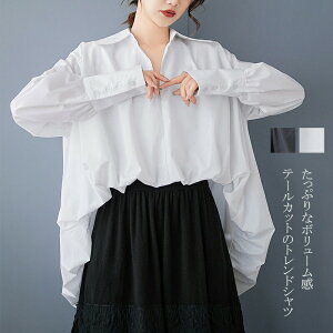 ブラウス レディース デザイン トップス シャツブラウス シャツ プルオーバー 春 夏 ボリューム テールカット フレア裾 フレア 上品 きれいめ 通勤 大きいサイズ Vネック 長袖 ママスーツ イ