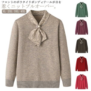 ニットセーター 80代 婦人服 クルーネック 暖かい レディース ニットトップス おばあちゃん ニットプルオーバー シニアファッション 秋冬 お誕生日 70代 60代 50代 リボン付き 防寒 寒さ対策