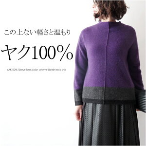 【大感謝祭期間限定10%OFF】ヤク100%配色ニット ミセス ファッション 50代 40代 60代 70代 秋冬 レディース 女性 おしゃれ 普段着 お出かけ着 オフハイネック 上質 ハイクラス 高級 毛 柔らかい
