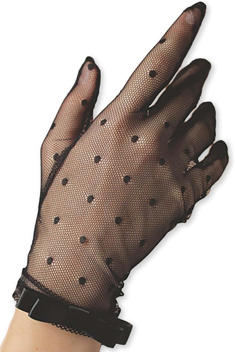 手袋 レース 黒 ネイル隠し フォーマル レディース タッチパネル対応 シースルー リボン 水玉 (ブラック, Free Size)