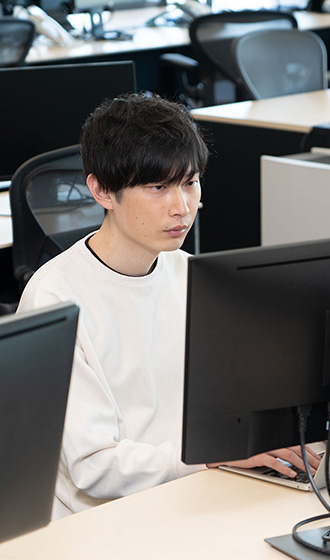 配属後1〜2か月は、研修を通じてプログラミングの基礎を学び、それ以降徐々に実務に関わっていきました。フロントと呼ばれるユーザーの目に触れるような画面の開発や、リスティング広告のシステム側の運用業務、求人ボックス上の求人掲載用プラットフォームの大規模リニューアルといった、幅広い領域の設計・開発・運用を推進しています。